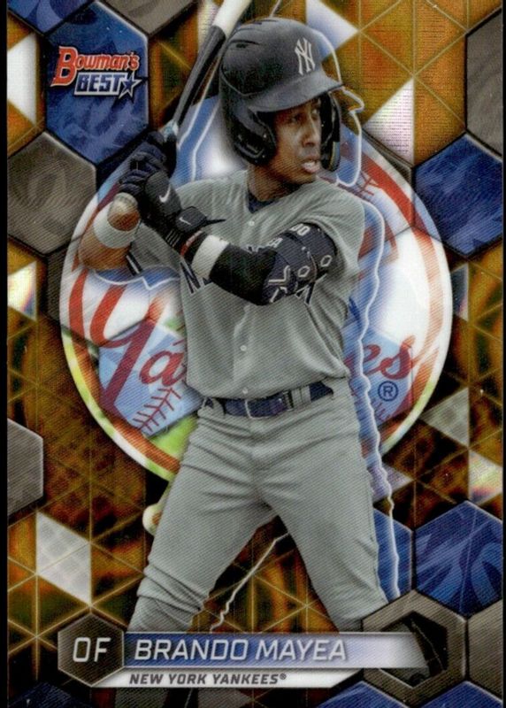 This card is 1 of 25 Brando Mayea's card variations in the 2023 Bowman's Best set being tracked by Sports Card Investor, including Top Prospects, Top Prospects - Refractor, Top Prospects - Wave Refractor, Top Prospects - Mini-Diamond Refractor /299, and Top Prospects - Purple Refractor /250.