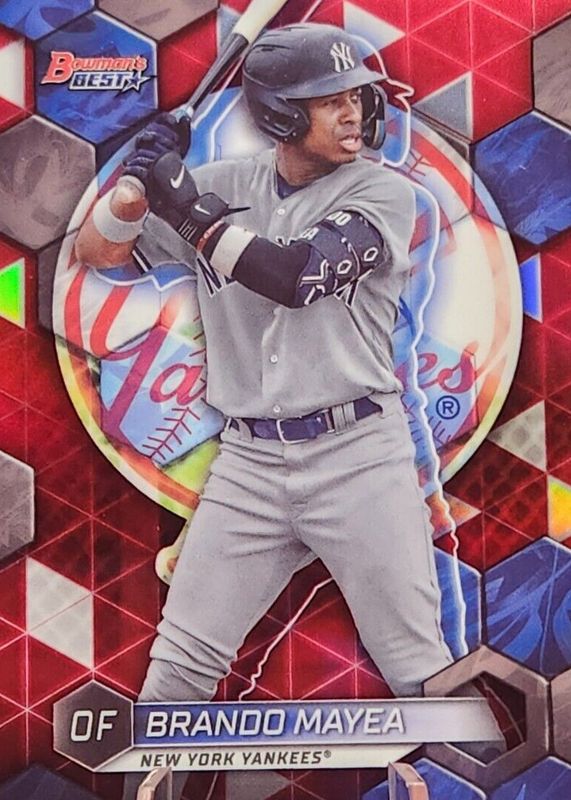 This card is 1 of 25 Brando Mayea's card variations in the 2023 Bowman's Best set being tracked by Sports Card Investor, including Top Prospects, Top Prospects - Refractor, Top Prospects - Wave Refractor, Top Prospects - Mini-Diamond Refractor /299, and Top Prospects - Purple Refractor /250.