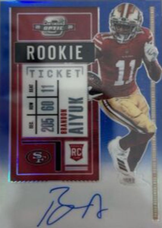 Best Prices Available For Sale of Brandon Aiyuk 2020 Contenders Optic #110 Rookie Ticket Auto - Blue /75