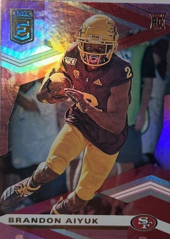 This card is 1 of 16 Brandon Aiyuk's card variations in the 2020 Elite set being tracked by Sports Card Investor, including Base Rookie /799, Green, Red /399, Purple /99, and Razzle Dazzle /(SSP).