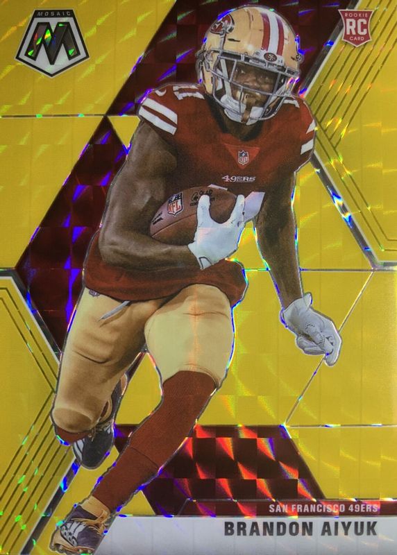 Auctions Ending Soon for Brandon Aiyuk 2020 Mosaic #210 Gold Fluorescent /20 Rookie RAW