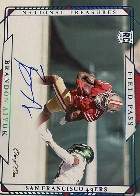 Auctions Ending Soon for Brandon Aiyuk 2020 National Treasures #FP-BA Rookie Signatures Field Pass - Platinum /1 RAW