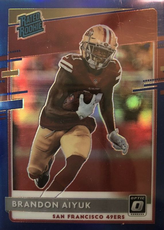 The Brandon Aiyuk 2020 Optic #169 Blue /179 Rookie card in Raw condition has not changed in price in the last 30 days and was last sold for $3.25 .