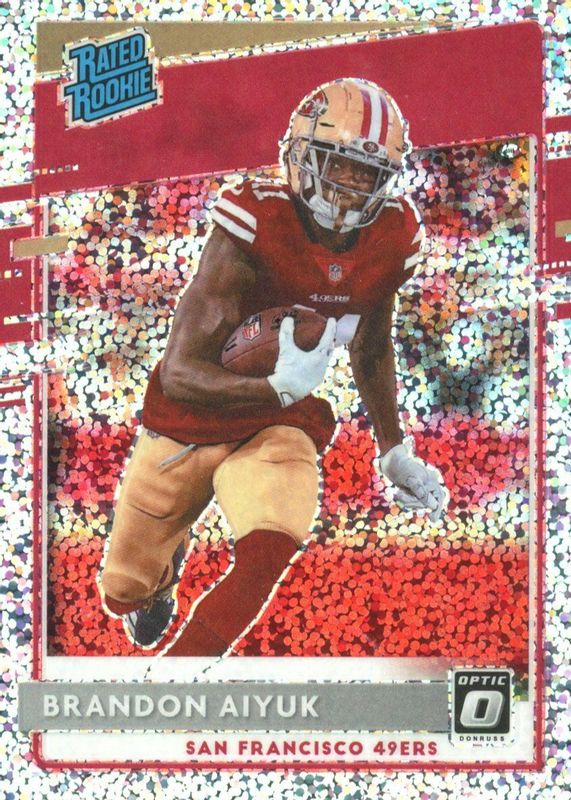 This card is 1 of 49 Brandon Aiyuk's card variations in the 2020 Optic set being tracked by Sports Card Investor, including Base, Blue Hyper, Blue Scope, Bronze, and Green Velocity.