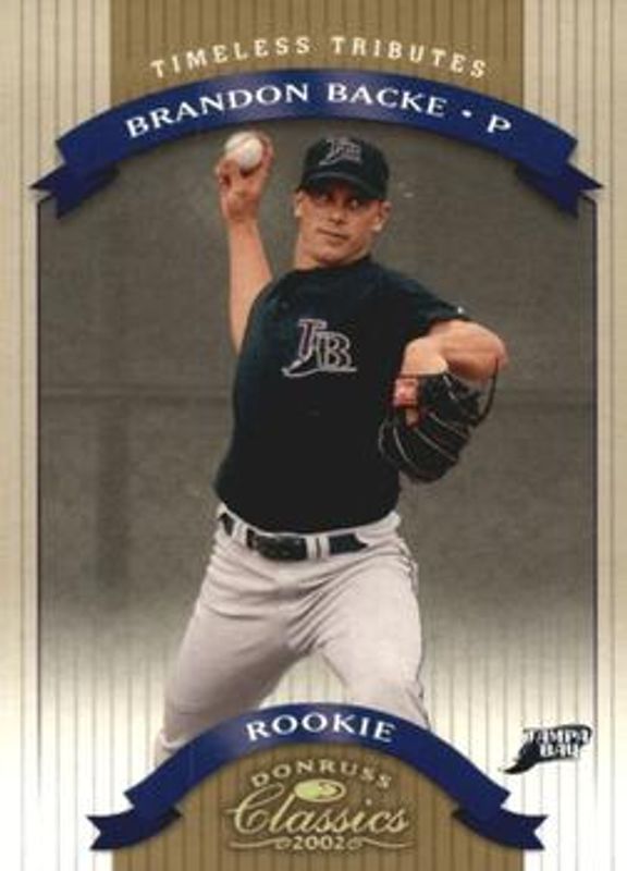 The Brandon Backe 2002 Donruss Classics #134 Timeless Tributes /100 Rookie card is 1 of 4 Brandon Backe's card variations in the 2002 Donruss Classics set being tracked by Sports Card Investor, including Base /1500, Chicago National /5, and Significant Signatures /100.