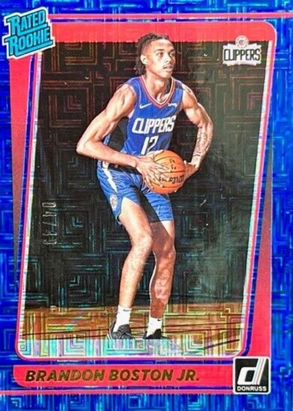 The Brandon Boston Jr. 2021 Donruss #239 Choice Blue /49 Rookie card in Raw condition has not changed in price in the last 30 days and was last sold for $13.49 .