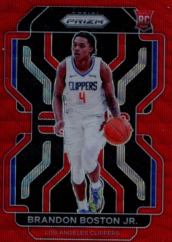 BRANDON BOSTON JR. 2021-22 PANINI PRIZM ROOKIE RED/RUBY WAVE PRIZM #330 CLIPPERS