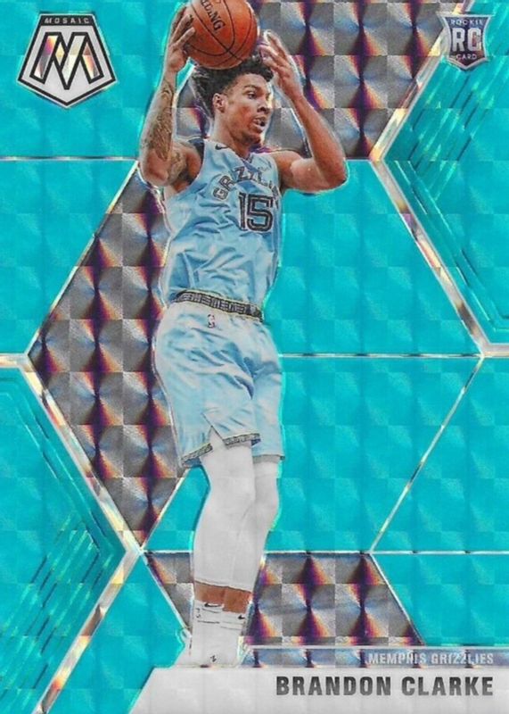 The Brandon Clarke 2019 Mosaic #207 Blue Fluorescent /15 Rookie card in Raw condition has not changed in price in the last 30 days and was last sold for $20.50 .
