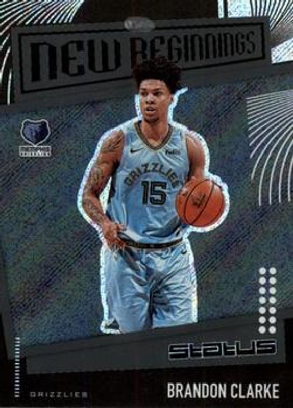 The Brandon Clarke 2019 Status #9 New Beginnings Rookie card is 1 of 22 Brandon Clarke's card variations in the 2019 Status set being tracked by Sports Card Investor, including Base, Blue, Red, White Diamonds /125, and Green Escher Squares /49.