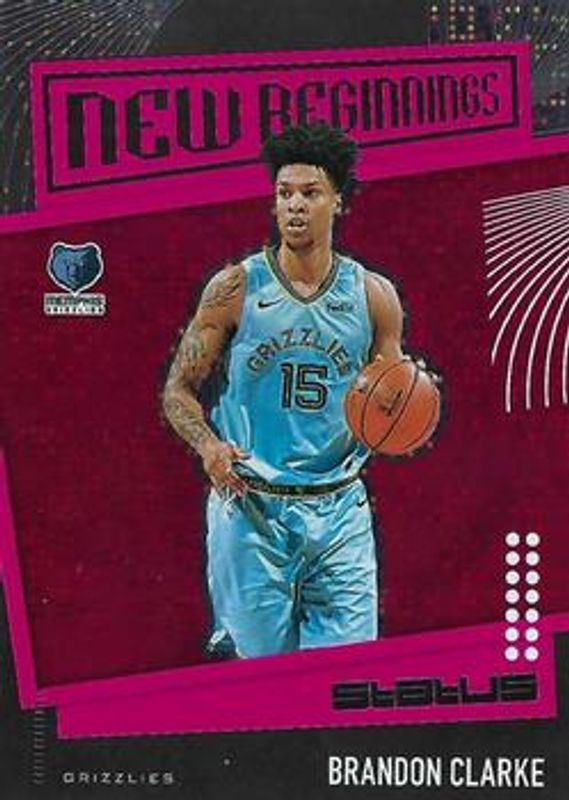 The Brandon Clarke 2019 Status #9 New Beginnings - Red Rookie card is 1 of 22 Brandon Clarke's card variations in the 2019 Status set being tracked by Sports Card Investor, including Base, Blue, Red, White Diamonds /125, and Green Escher Squares /49.