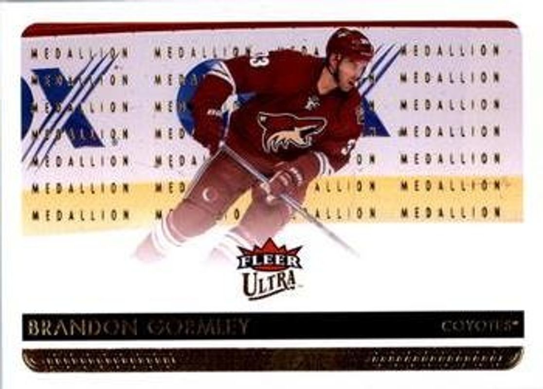 The Brandon Gormley 2014 Fleer Ultra #143 Gold Medallion Rookie card is 1 of 7 Brandon Gormley's card variations in the 2014 Fleer Ultra set being tracked by Sports Card Investor, including Base, Platinum Medallion /25, Violet /1, EX /299, and EX Essential Credentials Future /42.