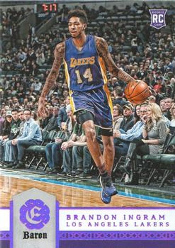 The Brandon Ingram 2016 Excalibur #80 Baron Rookie card is 1 of 34 Brandon Ingram's card variations in the 2016 Excalibur set being tracked by Sports Card Investor, including Base, Count, Lord, Viscount, and Marquis /199.