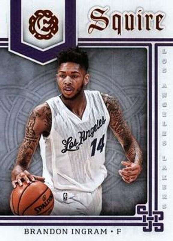 The Brandon Ingram 2016 Excalibur #4 Squire Rookie card is 1 of 34 Brandon Ingram's card variations in the 2016 Excalibur set being tracked by Sports Card Investor, including Base, Baron, Count, Lord, and Viscount.