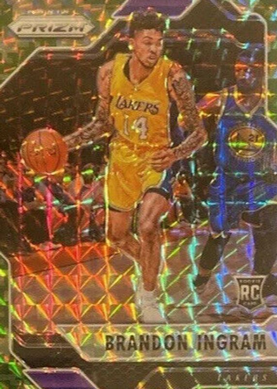 This card is 1 of 9 Brandon Ingram's card variations in the 2016 Prizm Mosaic set being tracked by Sports Card Investor, including Base, Blue, Red, Gold /10, and Black /1.