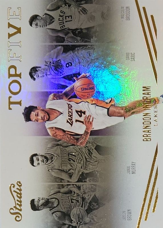 The Brandon Ingram 2016 Studio #TOP3 Top Five /(SSP) Rookie card in Raw condition has not changed in price in the last 30 days and was last sold for $7.79 .