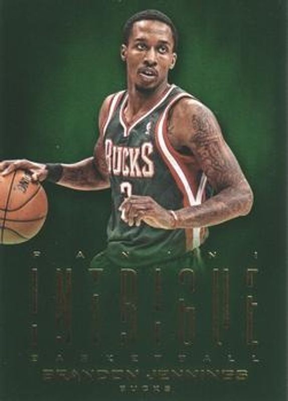 The Brandon Jennings 2012 Intrigue #25 Base /99 card is 1 of 6 Brandon Jennings' card variations in the 2012 Intrigue set being tracked by Sports Card Investor, including Gold /10, Platinum /1, Top Flight Unis /99, Top Flight Unis - Prime /10, and Top Flight Unis Laundry - Tags /1.