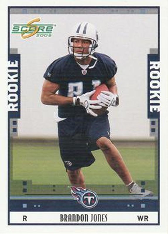 The Brandon Jones 2005 Score #375 Base card is 1 of 6 Brandon Jones' card variations in the 2005 Score set being tracked by Sports Card Investor, including Glossy, Scorecard /599, Adrenaline /399, Revolution /199, and Final Score /17.