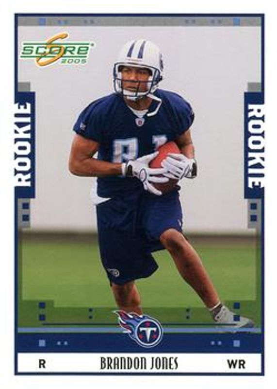 The Brandon Jones 2005 Score #375 Glossy card is 1 of 6 Brandon Jones' card variations in the 2005 Score set being tracked by Sports Card Investor, including Base, Scorecard /599, Adrenaline /399, Revolution /199, and Final Score /17.