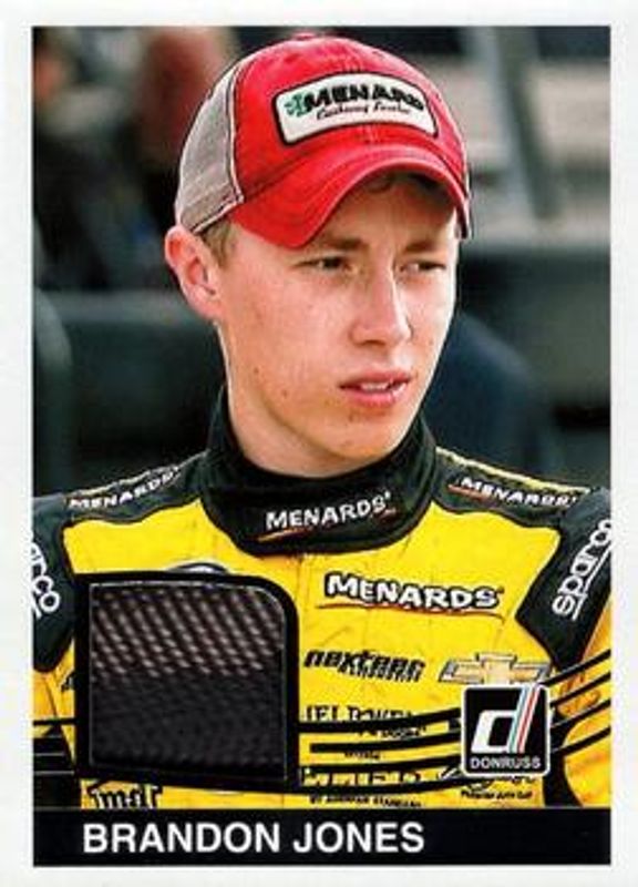 The Brandon Jones 2017 Donruss NASCAR #84-BJ Retro Relics 1984 card is 1 of 9 Brandon Jones' card variations in the 2017 Donruss NASCAR set being tracked by Sports Card Investor, including Rubber Relics, Signatures Series, Rubber Relics Holo Gold /99, Retro Relics 1984 Holo Gold /25, and Signatures Series Holo Gold /25.