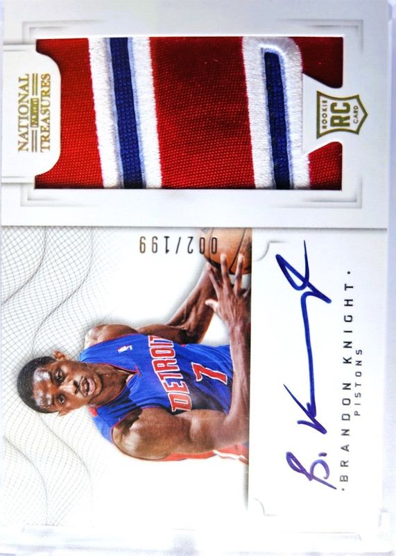 The Brandon Knight 2012 National Treasures #107 Rookie Patch Auto /199 card in Raw condition has not changed in price in the last 30 days and was last sold for $13.00 .