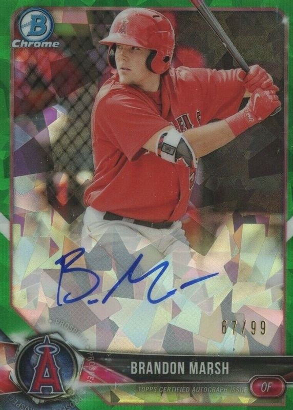 Best Prices Available For Sale of Brandon Marsh 2018 Bowman Chrome #BCPA-BM Prospect Auto - Green Atomic Refractor /99