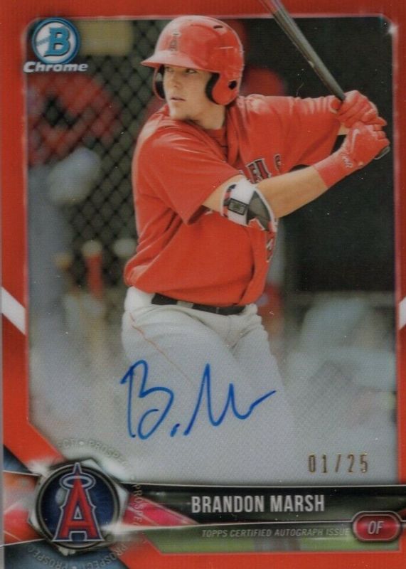 Best Prices Available For Sale of Brandon Marsh 2018 Bowman Chrome #BCPA-BM Prospect Auto - Orange Refractor /25