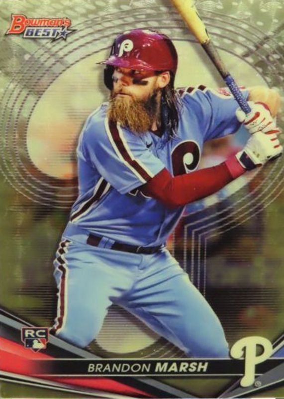 This card is 1 of 15 Brandon Marsh's card variations in the 2022 Bowman's Best set being tracked by Sports Card Investor, including Base, Atomic Refractor, Refractor, Mini-Diamond Refractor /299, and Purple Refractor /250.