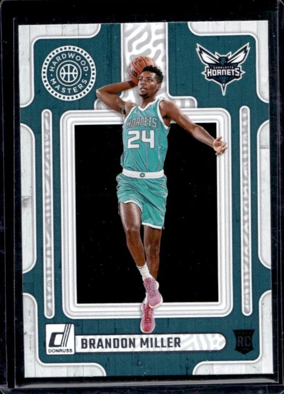 The Brandon Miller 2023 Donruss #7 Hardwood Masters Rookie card is 1 of 73 Brandon Miller's card variations in the 2023 Donruss set being tracked by Sports Card Investor, including Base, Choice, Holo Green Laser, Holo Red & Gold Laser, and Press Proof Silver.