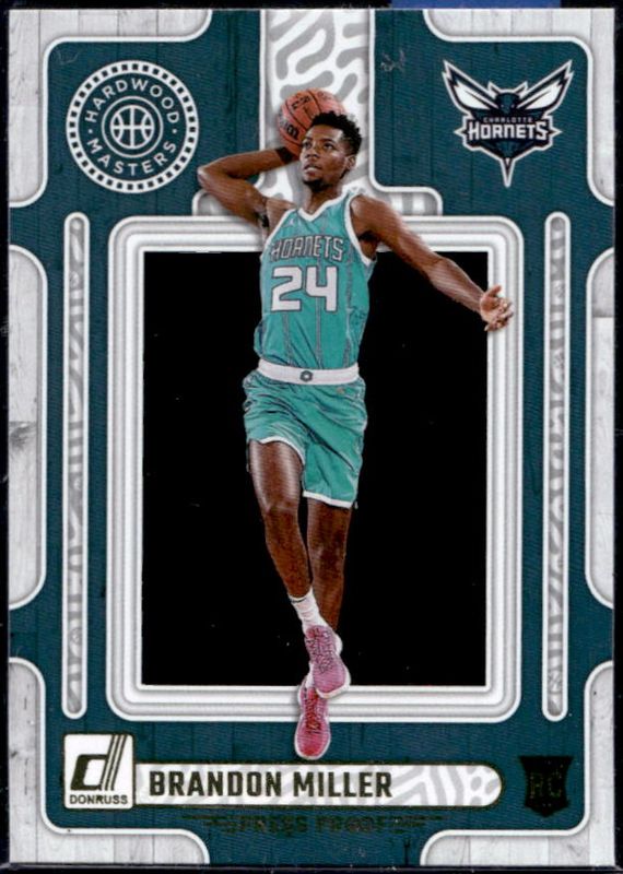 The Brandon Miller 2023 Donruss #7 Hardwood Masters - Press Proof Rookie card is 1 of 73 Brandon Miller's card variations in the 2023 Donruss set being tracked by Sports Card Investor, including Base, Choice, Holo Green Laser, Holo Red & Gold Laser, and Press Proof Silver.