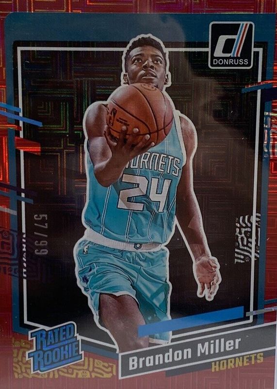 The Brandon Miller 2023 Donruss #226 Red Rookie card in Raw condition has moved down -$0.04 (-1.5%) in the last 30 days and was last sold for $2.25 .