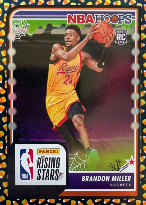The Brandon Miller 2023 Haunted Hoops #298 Rising Stars - Holo Candy Rookie card in Raw condition has not changed in price in the last 30 days and was last sold for $21.24 .