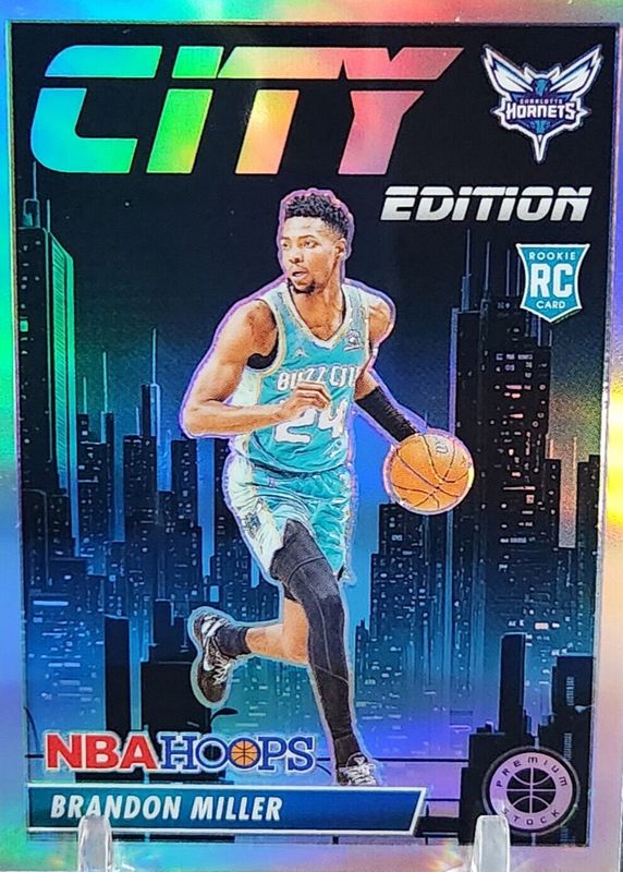 The Brandon Miller 2023 Hoops Premium Stock #12 City Edition - Silver Rookie card in Raw condition has moved up $0.11 (+11.5%) in the last 30 days and was last sold for $1.12 .