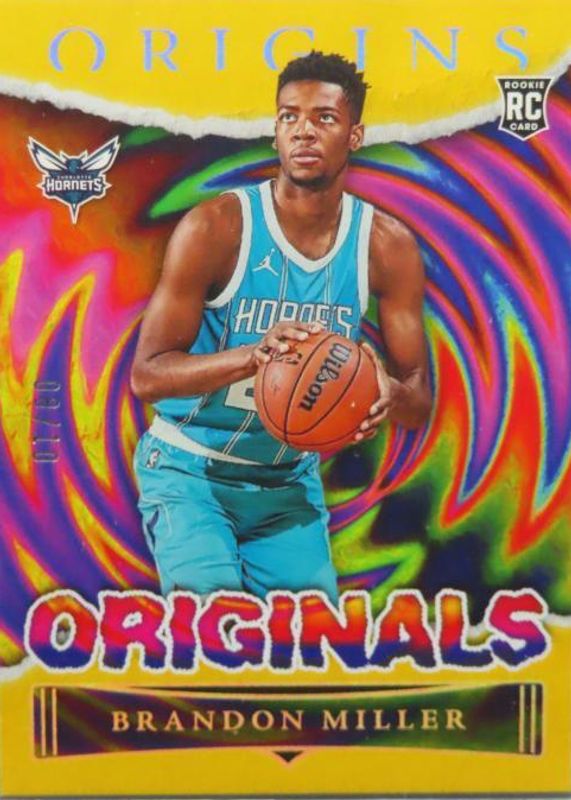 The Brandon Miller 2023 Origins #5 Originals - Gold /10 Rookie card in Raw condition has not changed in price in the last 30 days and was last sold for $227.50 .