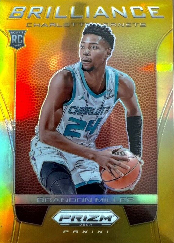 The Brandon Miller 2023 Prizm Deca #1 Brilliance - Gold /10 Rookie card in Raw condition has not changed in price in the last 30 days and was last sold for $710.00 .