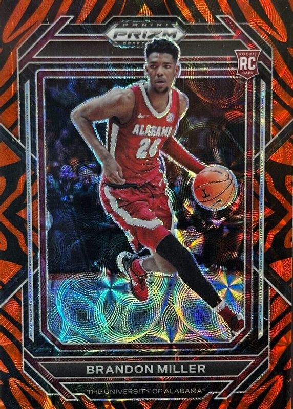 The Brandon Miller 2023 Prizm Draft Picks #63 Choice Tiger Stripe /(SSP) Rookie card in Raw condition has not changed in price in the last 30 days and was last sold for $45.00 .