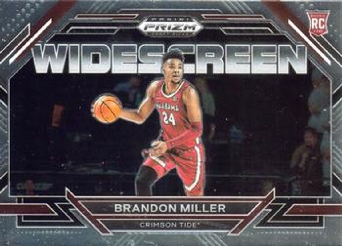 The Brandon Miller 2023 Prizm Draft Picks #9 Widescreen Rookie card is 1 of 154 Brandon Miller's card variations in the 2023 Prizm Draft Picks set being tracked by Sports Card Investor, including #63 Base, #63b Variation, #63 Variation, #63 Choice Blue Yellow Green, and #63 Green.