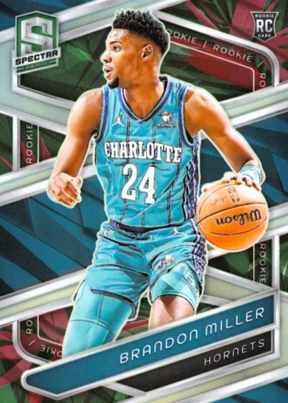 The Brandon Miller 2023 Spectra #161 Menagerie Rookie card in Raw condition has not changed in price in the last 30 days and was last sold for $0.99 .