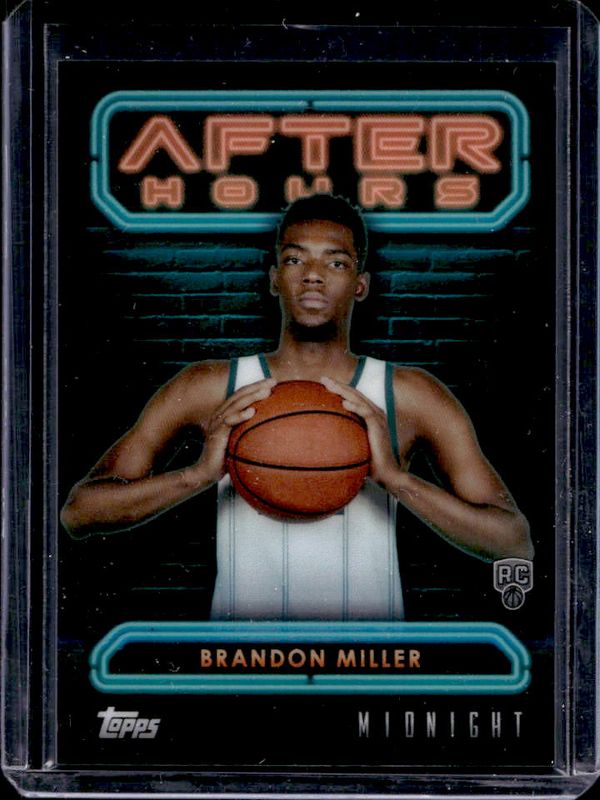 The Brandon Miller 2023 Topps Midnight #AT-17 After Hours Rookie card is 1 of 54 Brandon Miller's card variations in the 2023 Topps Midnight set being tracked by Sports Card Investor, including Base, Moon Beam, Zodiac, Morning /149, and Twilight /99.