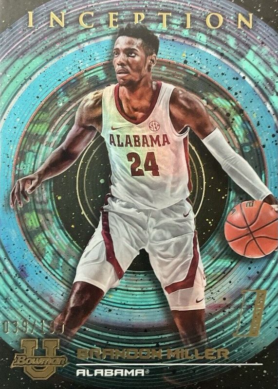 This card is 1 of 17 Brandon Miller's card variations in the 2022 Bowman University Inception set being tracked by Sports Card Investor, including Base (1st), Green Foil /299 (1st), Blue Foil /99 (1st), Fuchsia Foil /75 (1st), and Gold Foil /50 (1st).