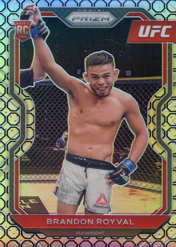 The Brandon Royval 2021 Prizm UFC #68 Octagon /8 Rookie card in Raw condition has not changed in price in the last 30 days and was last sold for $49.99 .