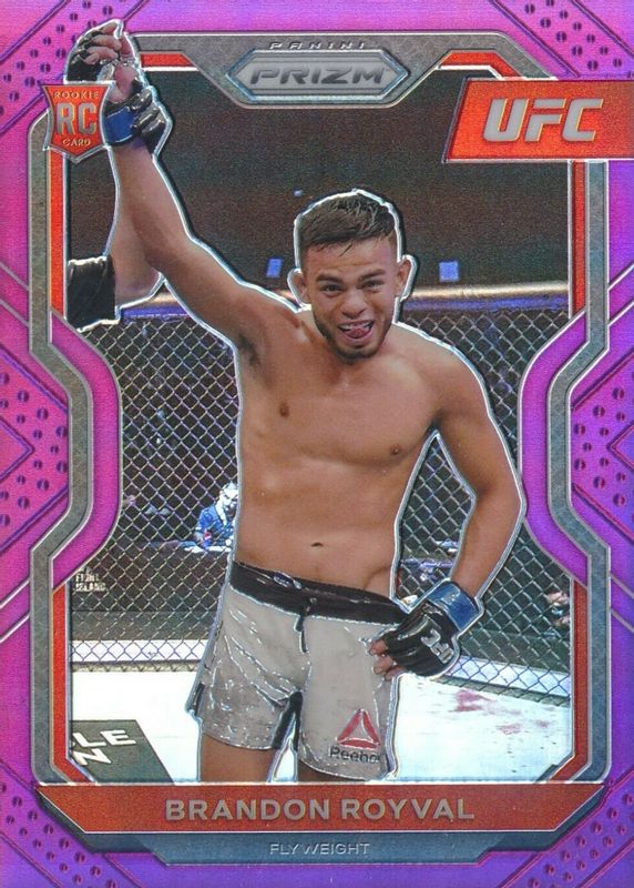 The Brandon Royval 2021 Prizm UFC #68 Purple /149 Rookie card in Raw condition has not changed in price in the last 30 days and was last sold for $3.50 .