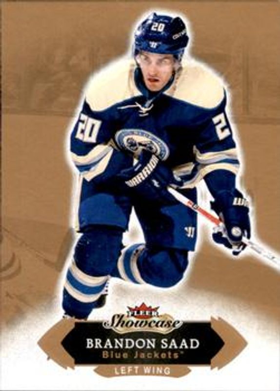 The Brandon Saad 2016 Fleer Showcase #32 Base /399 card is 1 of 3 Brandon Saad's card variations in the 2016 Fleer Showcase set being tracked by Sports Card Investor, including Red Glow /25, and White Hot /5.