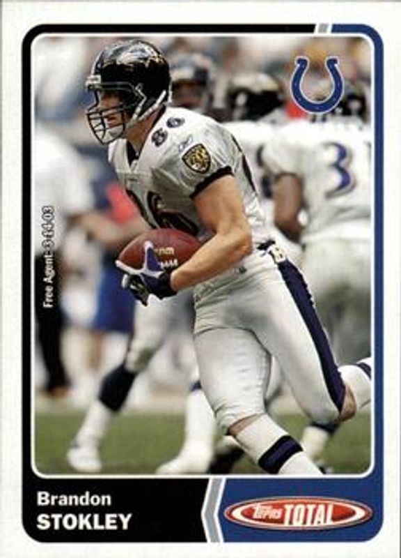 The Brandon Stokley 2003 Topps Total #194 Base card is 1 of 2 Brandon Stokley's card variations in the 2003 Topps Total set being tracked by Sports Card Investor, including Silver.