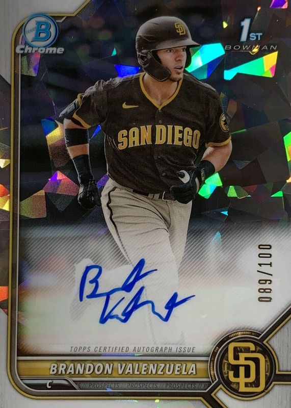 Brandon Valenzuela Auto 1st 2022 Bowman Chrome Atomic Refractor /100 Padres