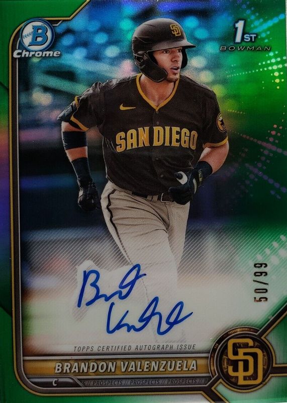 BRANDON VALENZUELA 2022 Bowman Chrome 1st Green Refractor /99 Auto SD PADRES