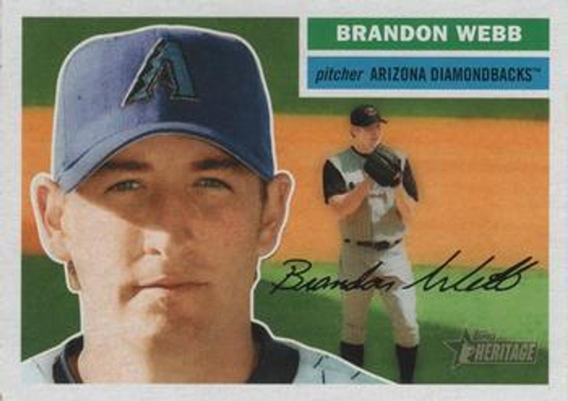 The Brandon Webb 2005 Topps Heritage #274 Base card is 1 of 2 Brandon Webb's card variations in the 2005 Topps Heritage set being tracked by Sports Card Investor, including Base.