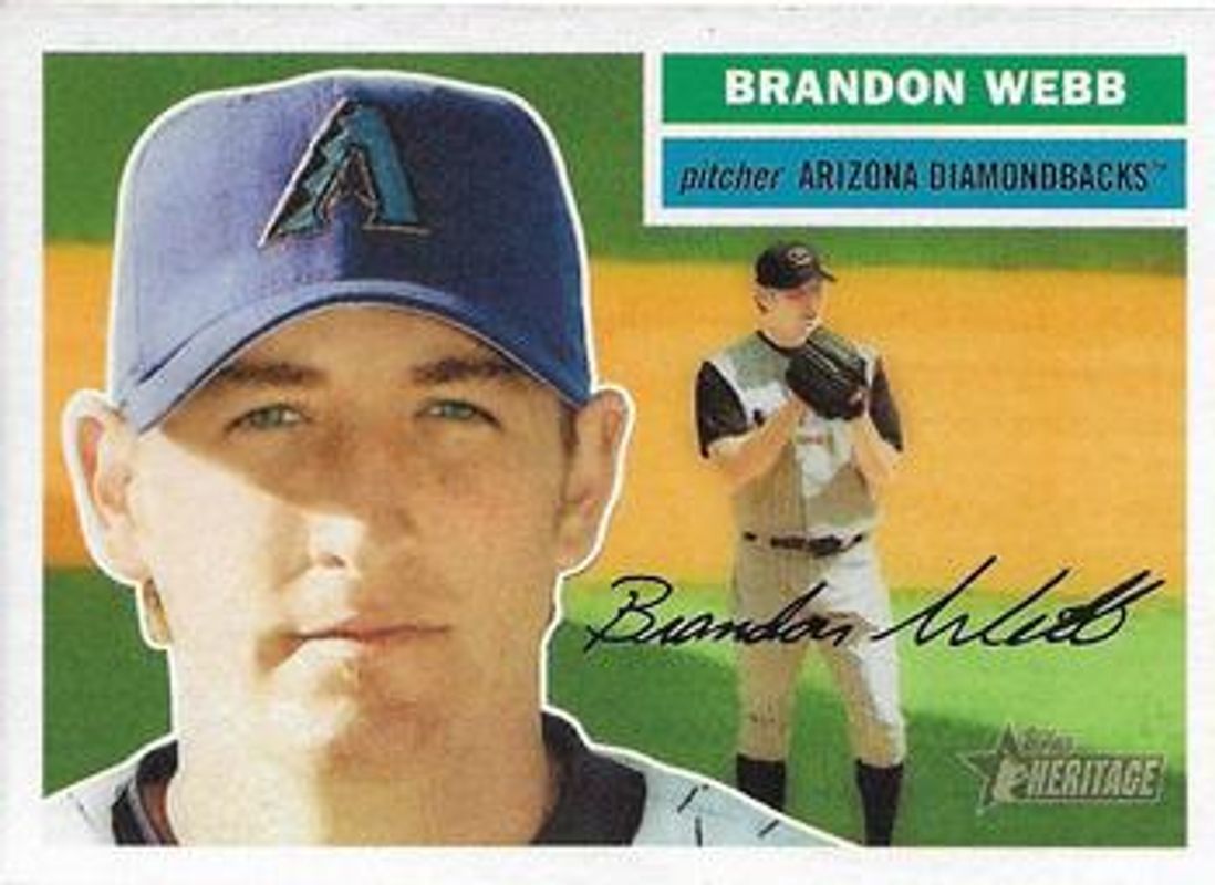 The Brandon Webb 2005 Topps Heritage #274b Base card is 1 of 2 Brandon Webb's card variations in the 2005 Topps Heritage set being tracked by Sports Card Investor, including Base.