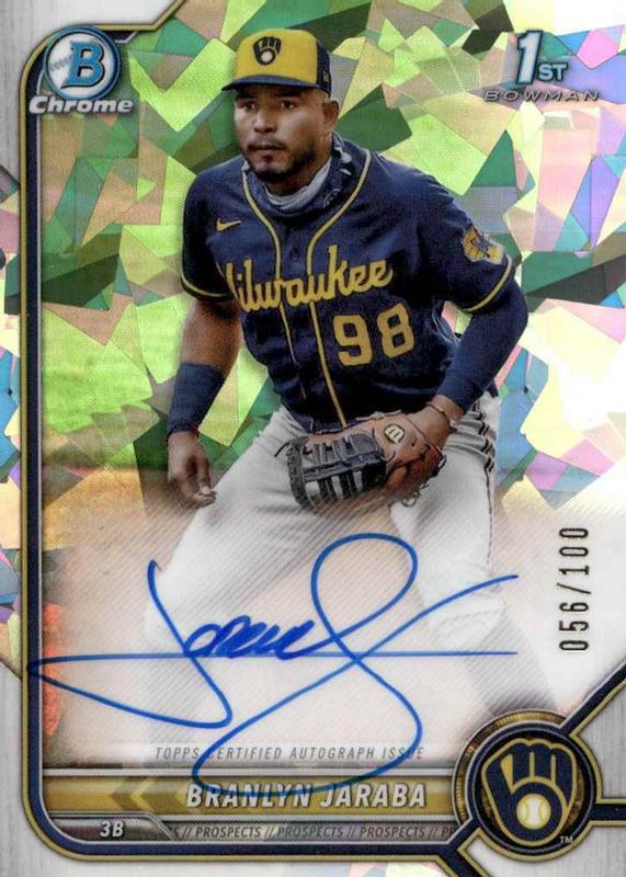 2022 Bowman Chrome Atomic Auto #100, #CPA-BJ Branlyn Jaraba (BREWERS)