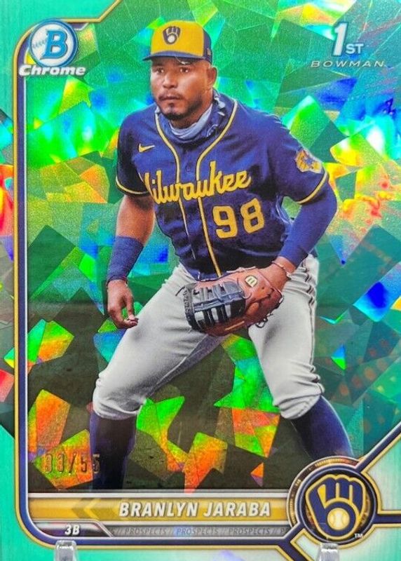 2022 Bowman Sapphire Edition Branlyn Jaraba Aqua #/55 #BCP-15 Brewers