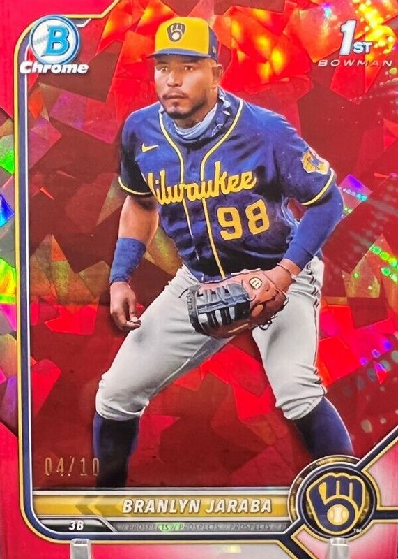 Best Prices Available For Sale of Branlyn Jaraba 2022 Bowman Sapphire Edition #BCP-15 Chrome Prospects - Red /10 (1st)